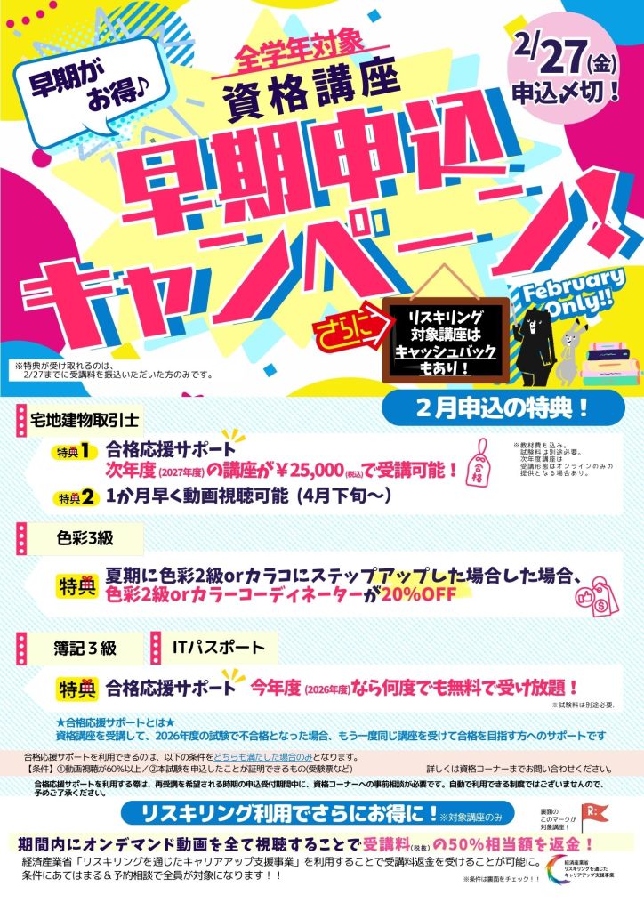 📢【2/27まで】2026年度 資格・公務員講座「早期申込」キャンペーン!